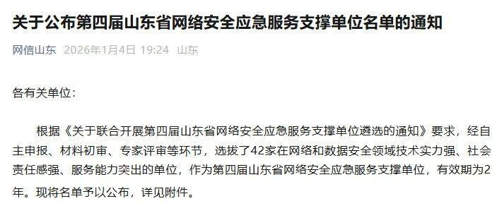 近日,山东省网络安全应急服务支撑单位名单正式公布,山东中网云安智能科技有限公司凭借扎实的技术实力、专业的服务能力和丰富的实战经验,...