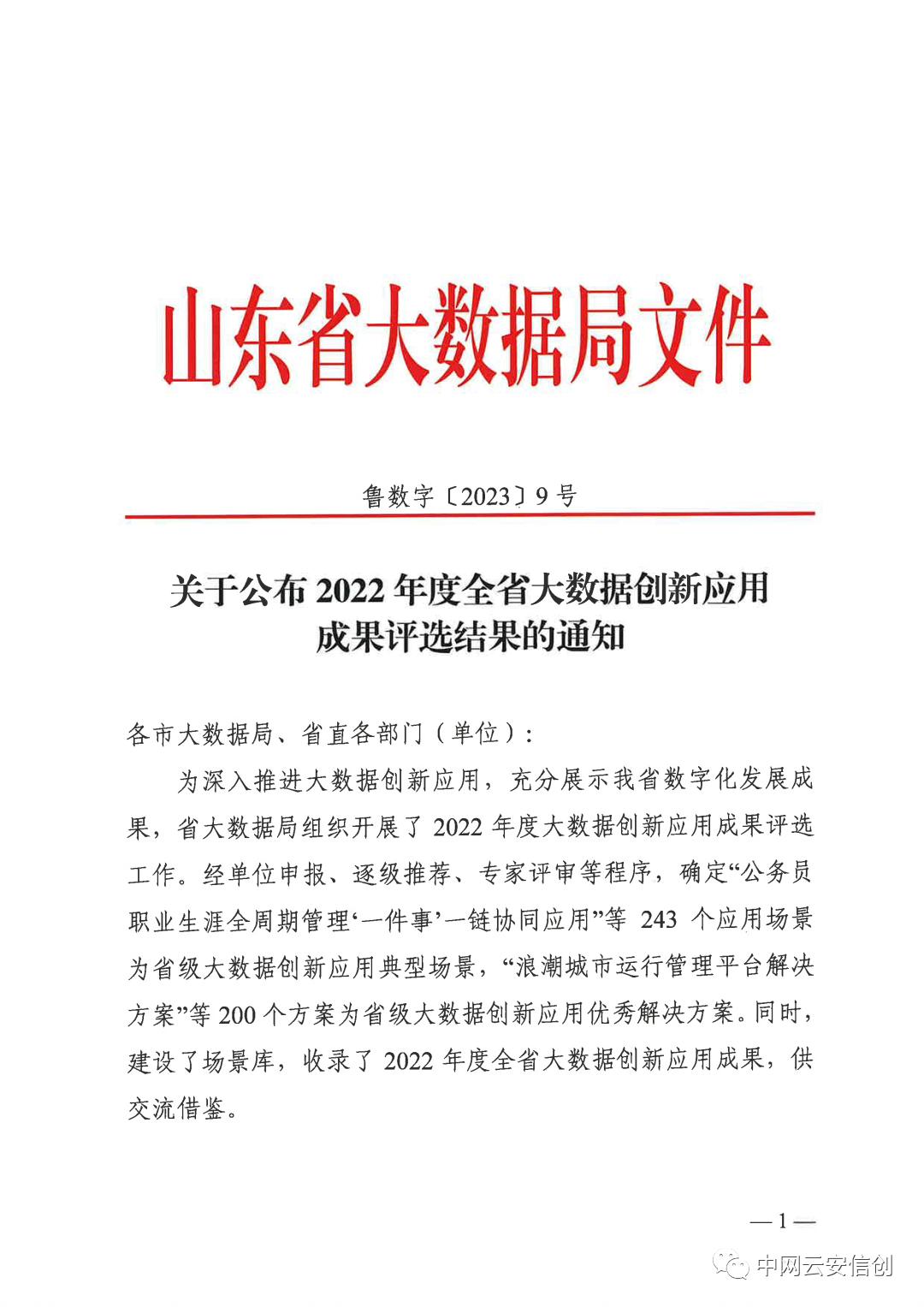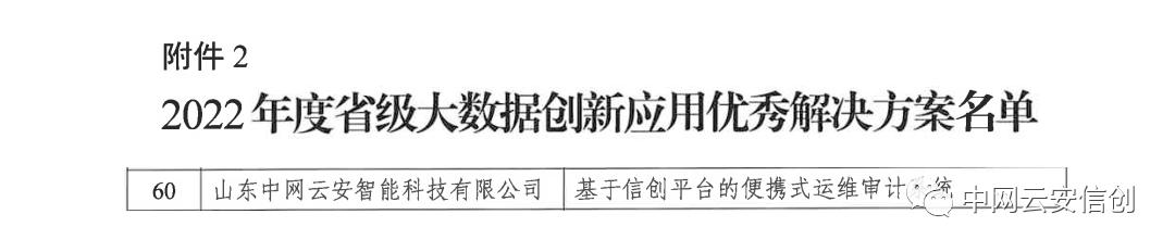 近日,山东中网云安智能科技有限公司的“基于信创平台的便携式运维审计系统”,获选2022年度省大数据创新应用优秀解决方案。