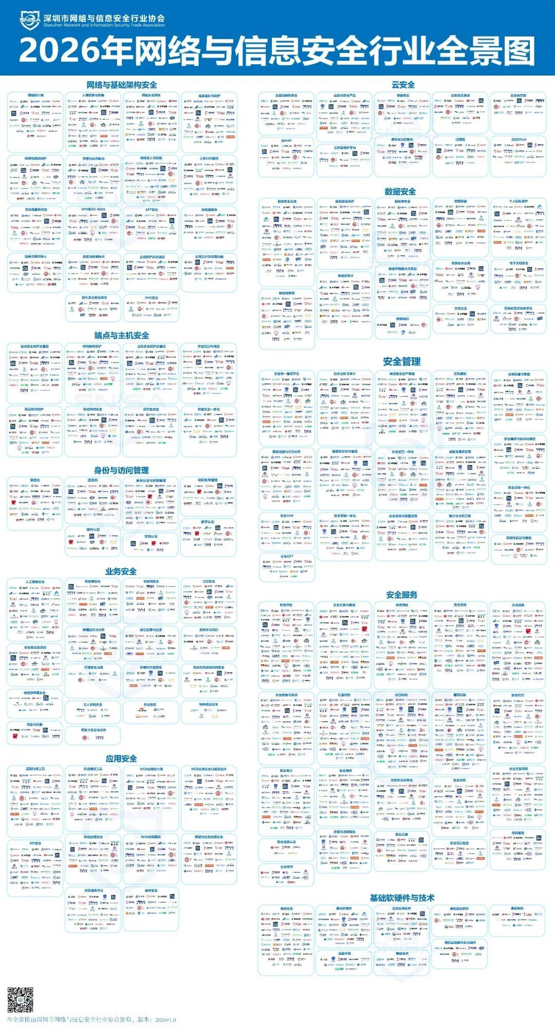 近日,深圳市网络与信息安全行业协会正式发布《2026年中国网络与信息安全行业全景图》。山东中网云安智能科技有限公司(以下简称“中网云安”)凭借过硬的技术实力与深厚的市场积累,共计18类核心安全产品成功入选,覆盖边界安全、信创安全、工控安全、数据安全等多个关键领域,成为本次全景图中入选品类最全的厂商之一。